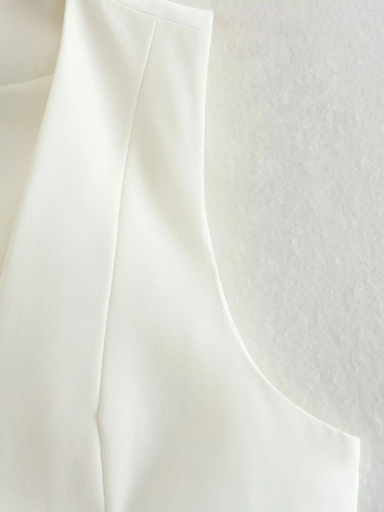 - Design Inteligente : Detalhes minimalistas como o botão decorativo e o decote em V garantem um visual sofisticado, enquanto o fechamento do peito apenas facilita o uso.